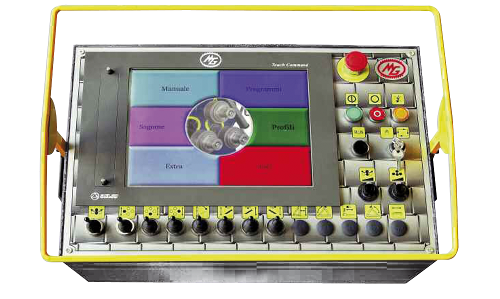 Neben dem anwenderfreundlichen Bedienpult können Sie die Hezinger BendLine MG3P auch mit einer optionalen CNC-Steuerung TouchCommand ausstatten. Hierüber nutzen Sie die Möglichkeit des vollautomatisierten Biege-Ablaufs, wobei auch die Nebenachsen für Stützvorrichtungen in der Automatisierung der Profilbiegemaschine inbegriffen sind.