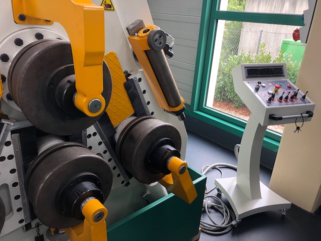 Die Bedienung des hydraulischen 4-Walzen Profilbieger HR4P erfolgt denkbar einfach über das frei verfahrbare Bedienpult. Die Positionen der Seitenwalzen und die Rotation der Oberwalze sind jeweils über eine entsprechende Digital-Anzeige am Bedienpult einsehbar. Das Material wird einfach zwischen Zentral- und Seitenwalzen eingebracht und über den Vorschub durch den Biegeprozess geführt. Für Hohl- und Sonderprofile sind entsprechend spezielle Walzensätze für den hydraulischen 4-Walzen Profilbieger erhältlich.
