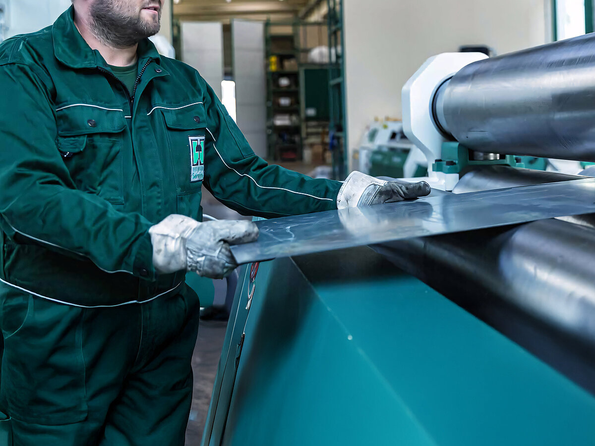 Die 4-Walzen Rundbiegemaschine Hezinger BendLine Baureihe MG4R ist eine leistungsstarke 4-Walzen-Maschine, die Sie einfach und bequem über eine NEXUS oder TouchCommand-Steuerung und Kniehebel bedienen. Zwei zusätzliche Digitalanzeigen für die Seitenwalzen-Position erlauben Ihnen hohe Präzision. Mit hoher Verformkraft und großer Vielseitigkeit eignet sich die Hezinger BendLine Baureihe MG4R für die industrielle Fertigung der Blechbearbeitung. Bleche mit Stärken von 0,5 bis 250 mm und mit einer Arbeitsbreite von 500 bis 8.000 mm, für unterschiedlichste Bereiche des Stahl- und Metallbaus können mit unserer Rundbiegemaschine bearbeitet werden. Mit einfacher Bedienung, geringen Betriebskosten und einem wartungsarmen Maschinenkonzept bietet Ihnen die 4-Walzen Rundbiegemaschine von Hezinger leistungsstarke und wirtschaftliche Unterstützung.