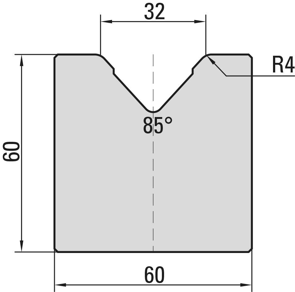 85° Matrize, V=32mm, R=4,0mm, H=60mm