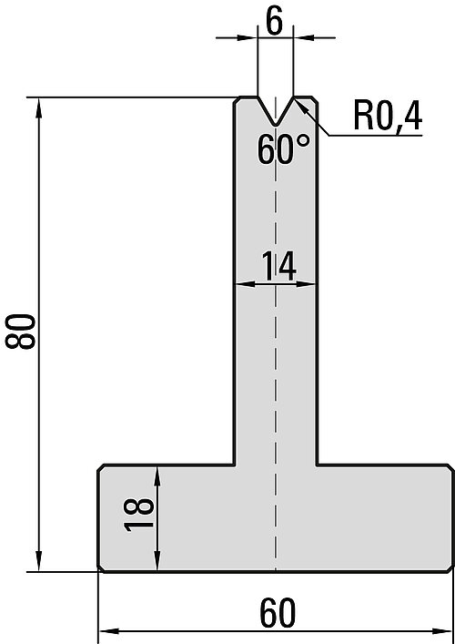 60° T-Matrize, V=6mm, R=0,4mm, H=80mm