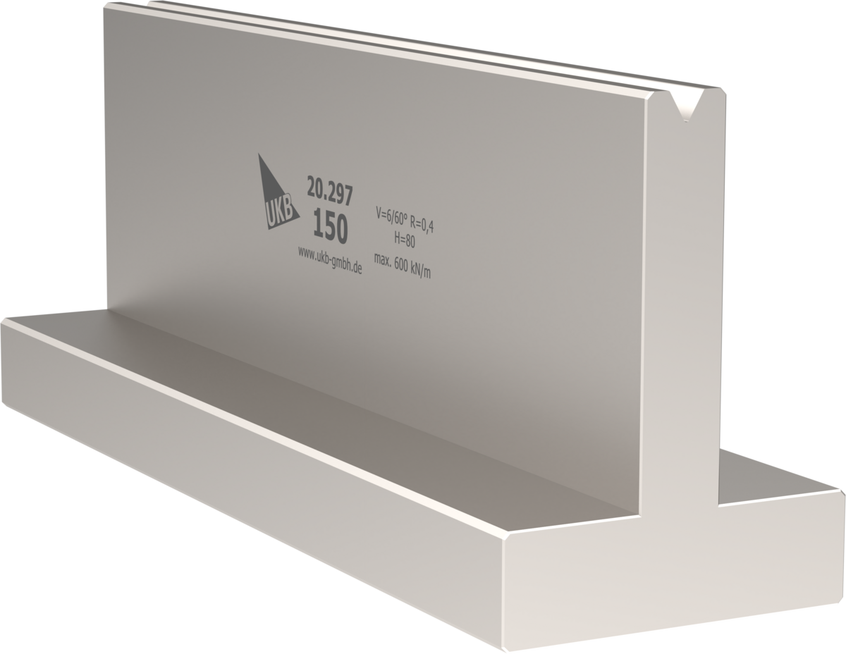 60° T-Matrize, V=6mm, R=0,4mm, H=80mm, B=14mm, L=800mm sektioniert in