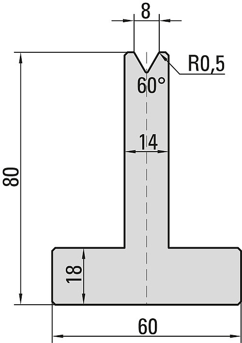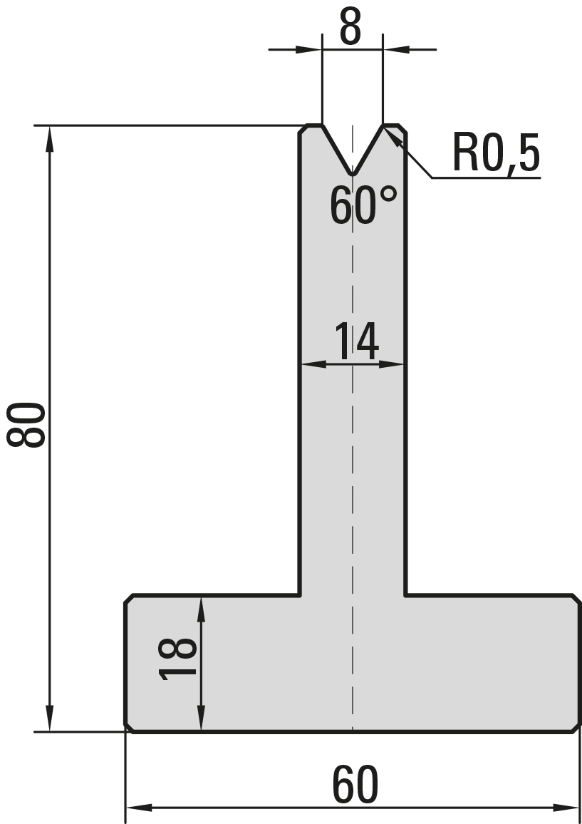 60° T-Matrize, V=8mm, R=0,5mm, H=80mm
