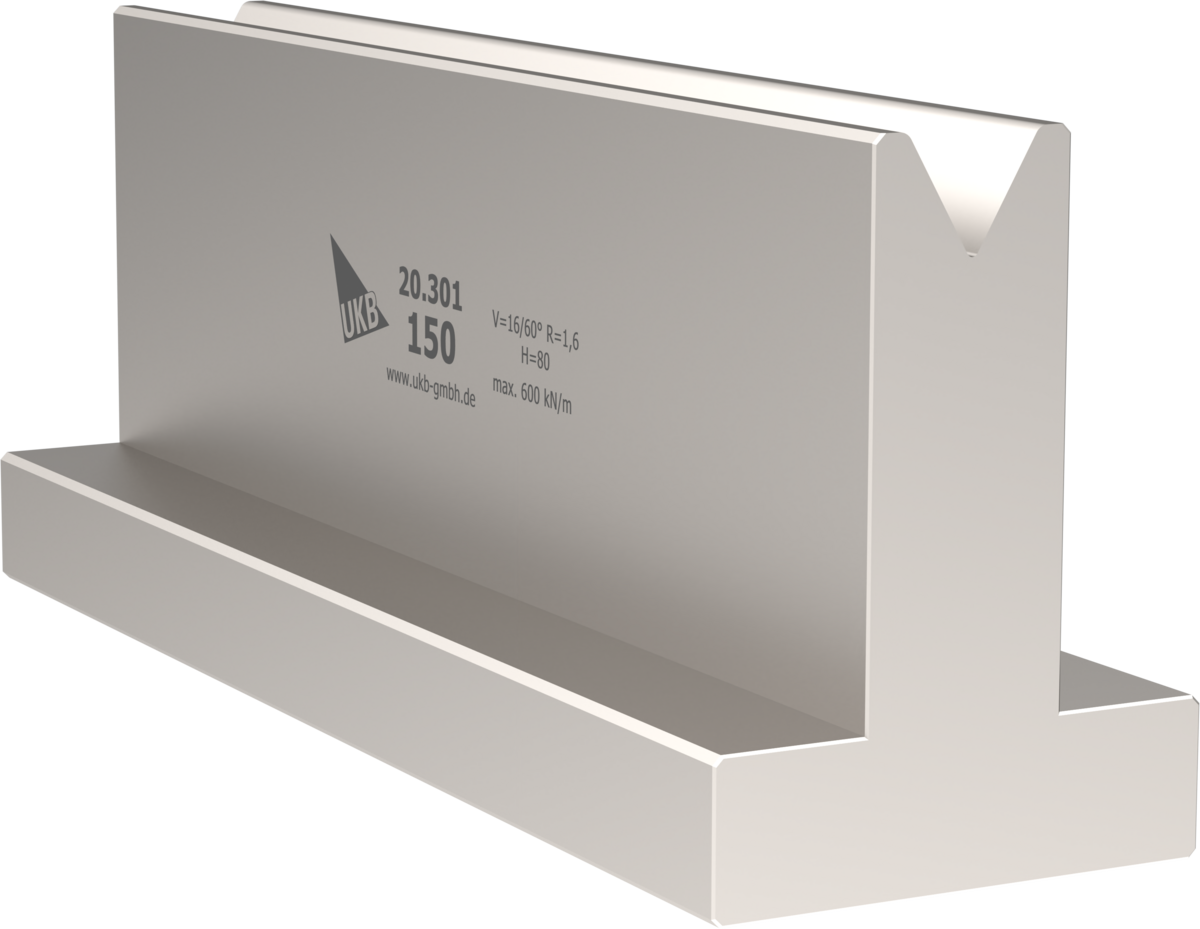 60° T-Matrize, V=16mm, R=1,6mm, H=80mm, B=24mm, L=800mm sektioniert in