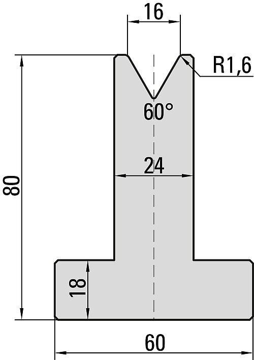 60° T-Matrize, V=16mm, R=1,6mm, H=80mm