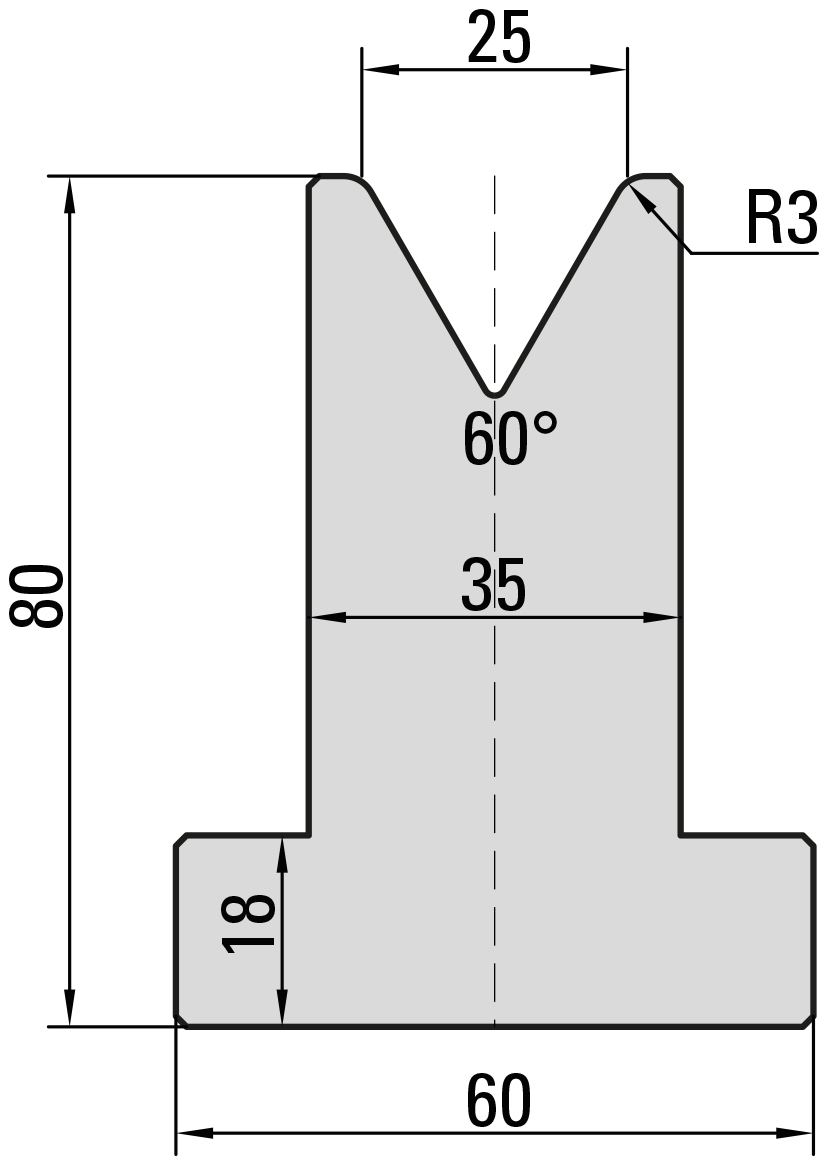 60° T-Matrize, V=25mm, R=3,0mm, H=80mm