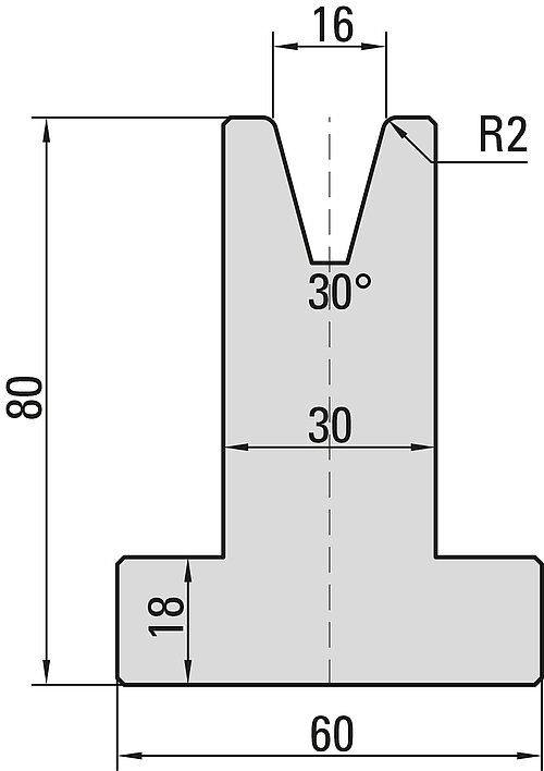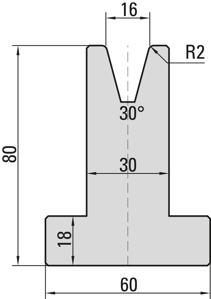30° T-Matrize, V=16mm, R=2,0mm, H=80mm