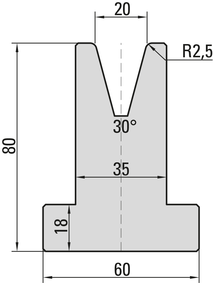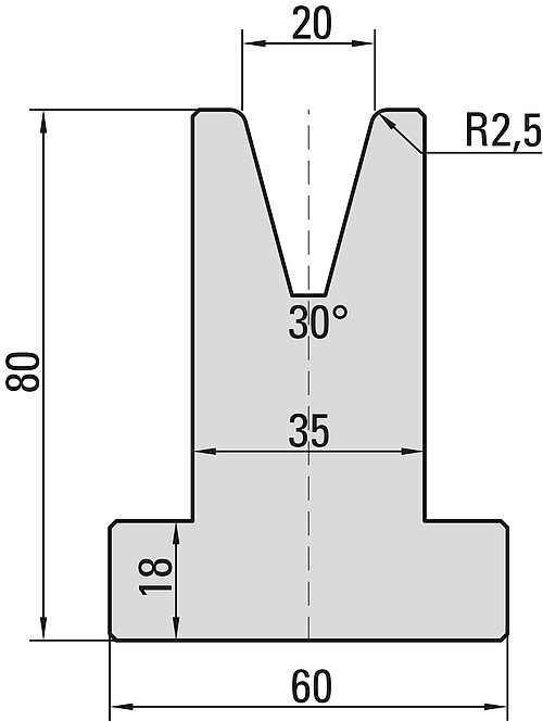 30° T-Matrize, V=20mm, R=2,5mm, H=80mm