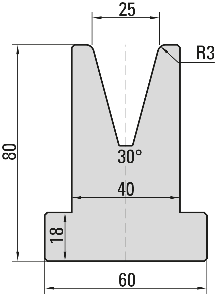 30° T-Matrize, V=25mm, R=3,0mm, H=80mm