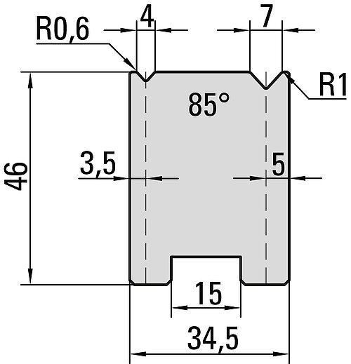85° Zentrische 2-V Matrize, V=4+7mm, H=46mm,