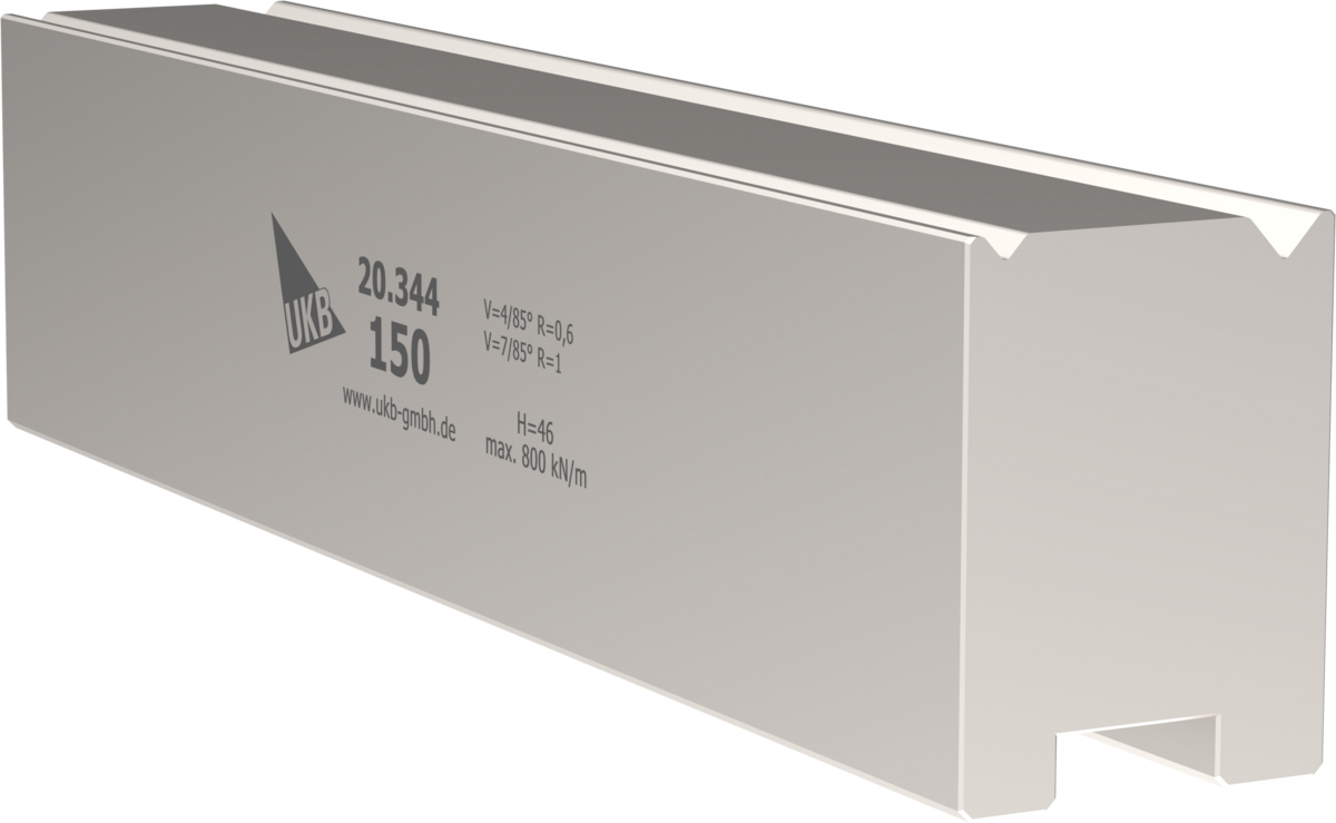 85° Zentrische 2-V Matrize, V=4+7mm, H=46mm, B=34,5mm, L=800mm sektioniert in
