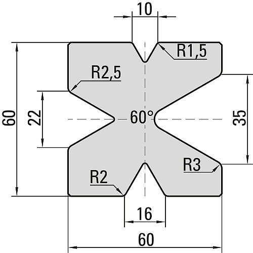 60° 4-V Matrize, V=10+16+22+35mm, H=60mm,