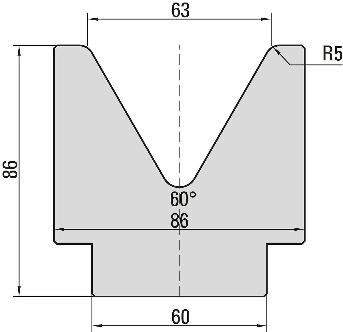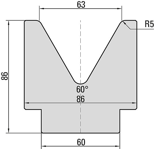 60° Matrize, V=63mm, R=5,0mm, H=86mm,