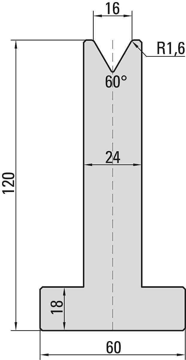 60° T-Matrize, V=16mm, R=1,6mm, H=120mm
