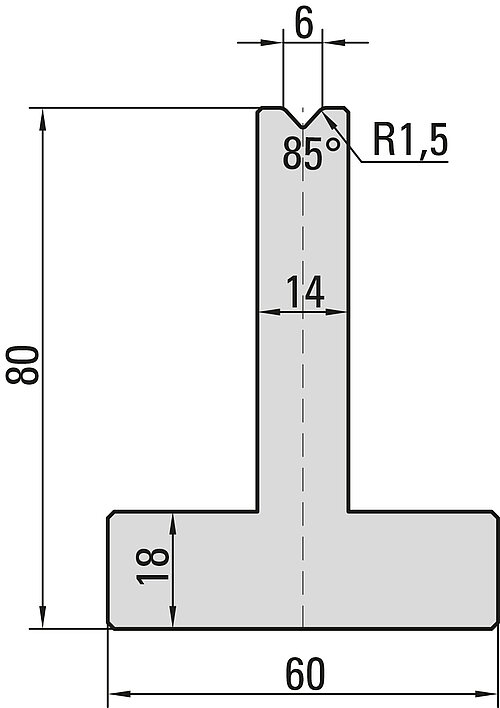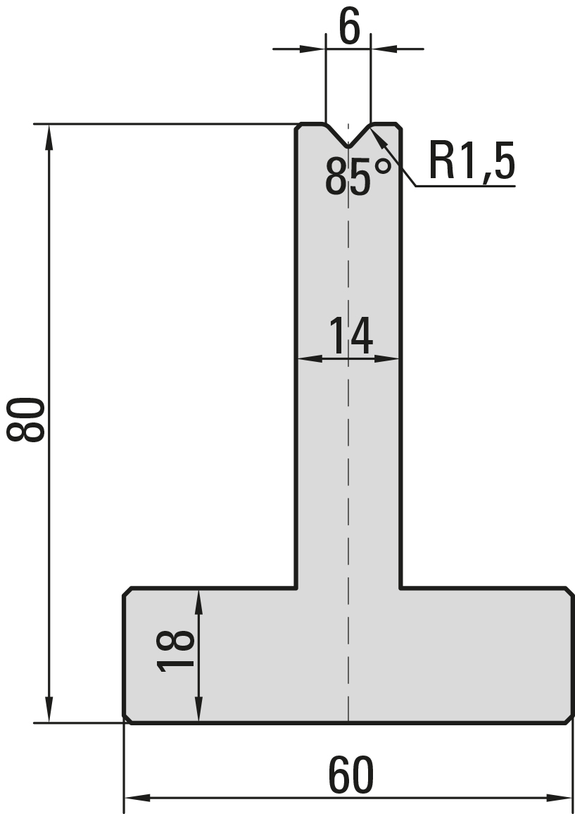 85° T-Matrize, V=6mm, R=1,5mm, H=80mm