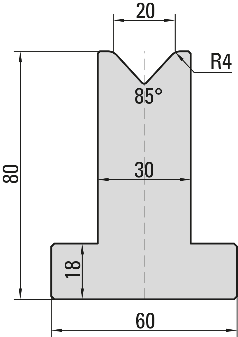85° T-Matrize, V=20mm, R=4,0mm, H=80mm