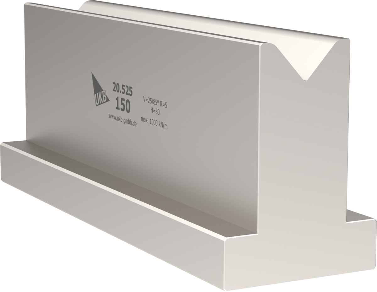 85° T-Matrize, V=25mm, R=5,0mm, H=80mm, B=35mm, L=800mm sektioniert in