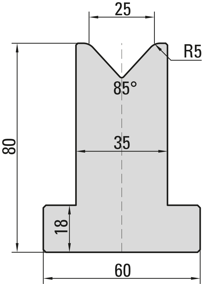 85° T-Matrize, V=25mm, R=5,0mm, H=80mm