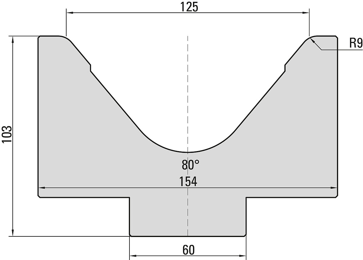 80° Matrize, V=125mm, R=9,0mm, H=103mm,