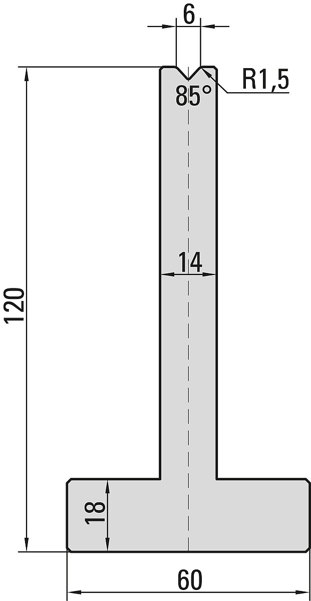 85° T-Matrize, V=6mm, R=1,5mm, H=120mm