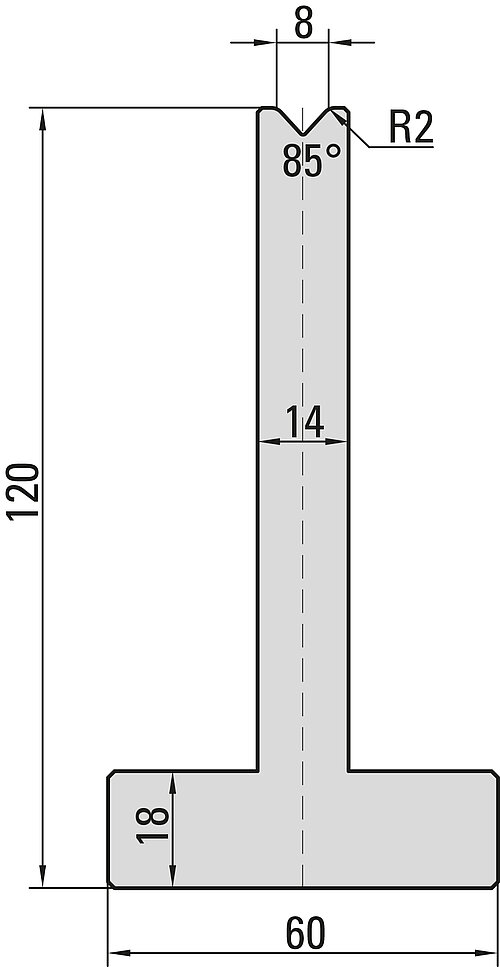 85° T-Matrize, V=8mm, R=2,0mm, H=120mm