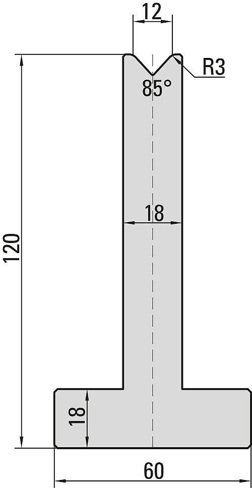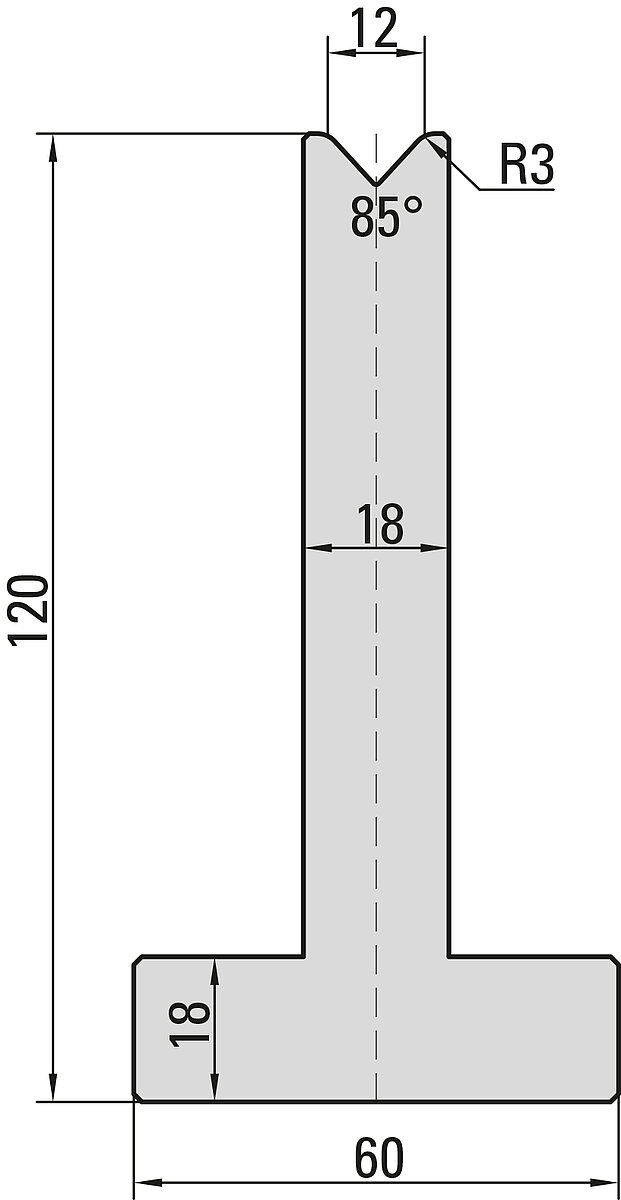 85° T-Matrize, V=12mm, R=3,0mm, H=120mm