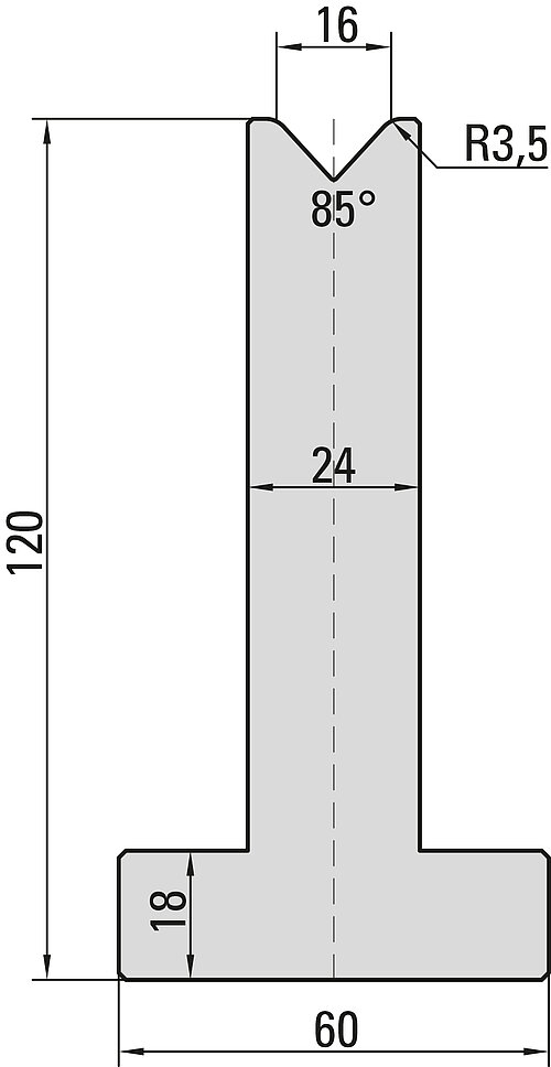 85° T-Matrize, V=16mm, R=3,5mm, H=120mm