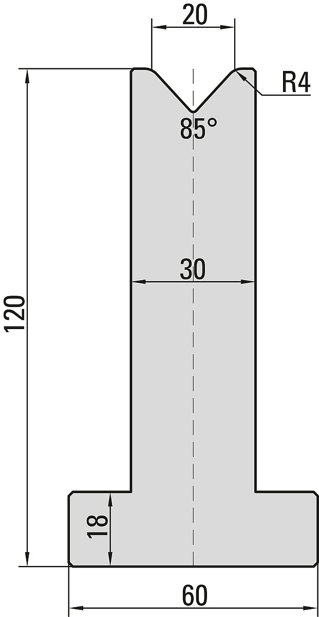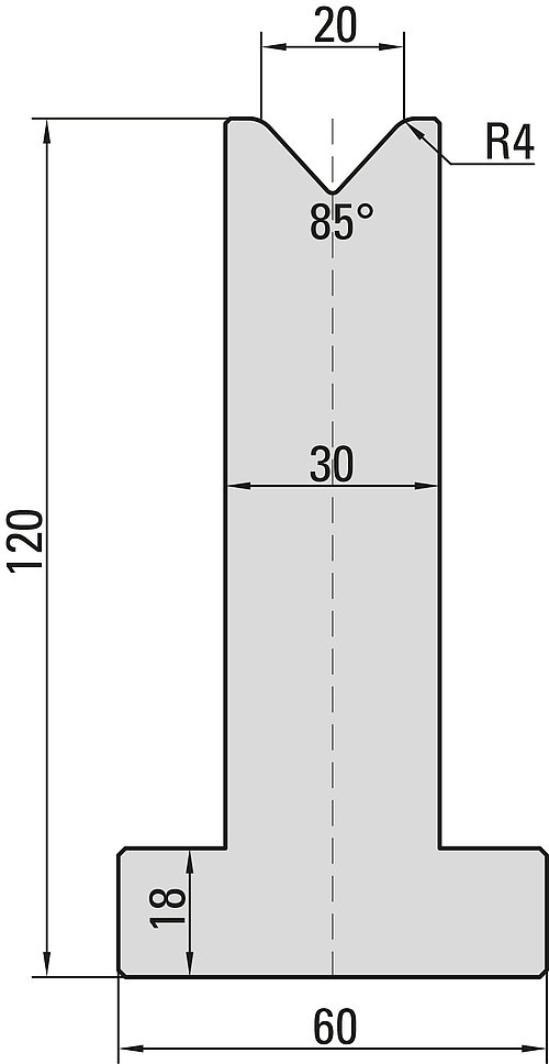 85° T-Matrize, V=20mm, R=4,0mm, H=120mm
