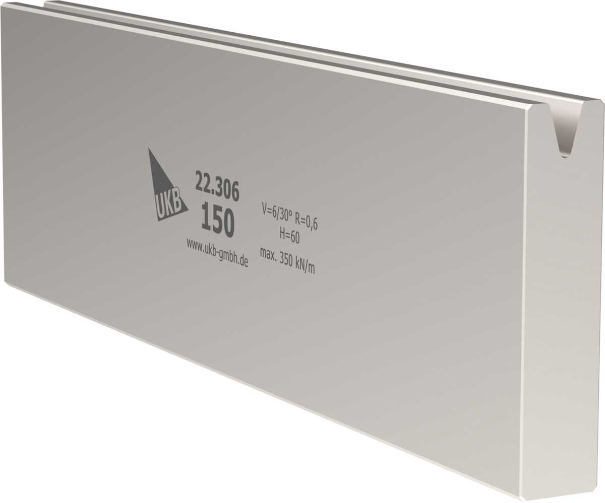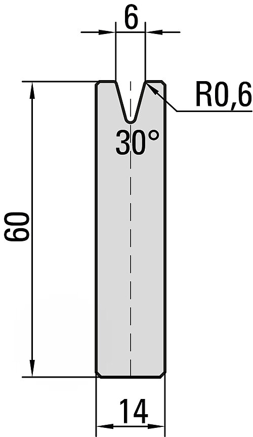 30° Zentrische 1-V Matrize, V=6mm, R=0,6mm, H=60mm, B=14mm, L=800mm