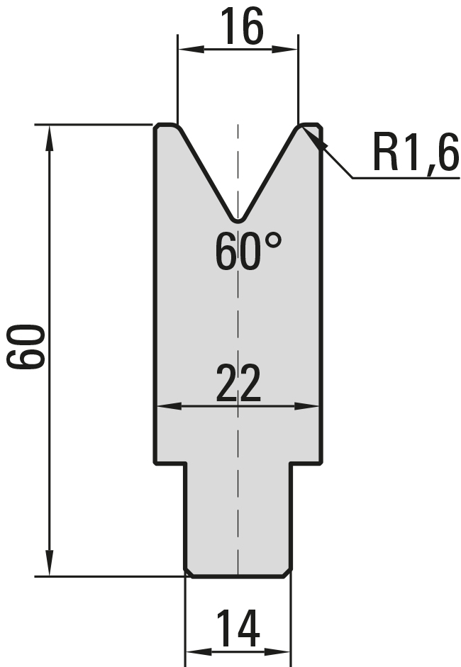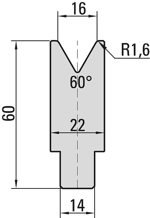 60° Zentrische 1-V Matrize, V=16mm