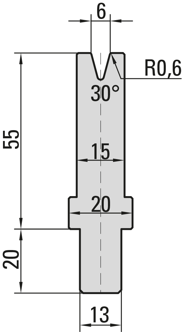 30° Matrize, V=6mm, R=0,6mm, H=55mm