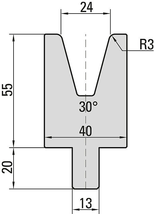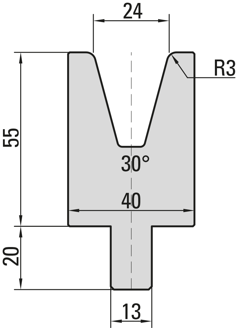 30° Matrize, V=24mm, R=3,0mm, H=55mm