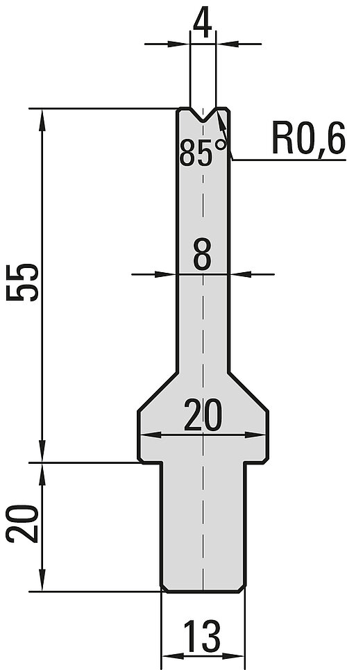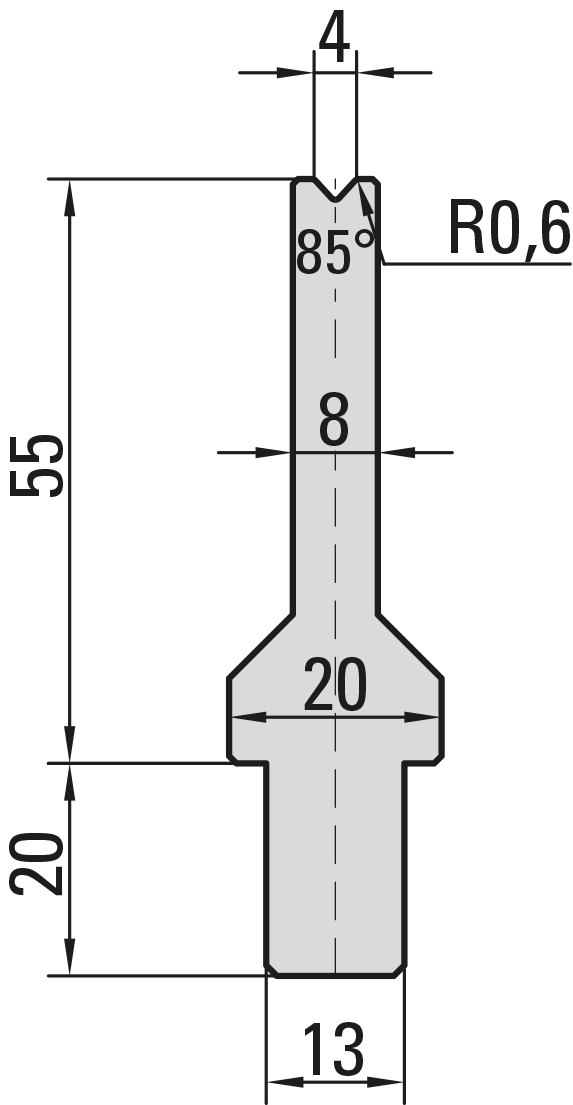 85° Matrize, V=4mm, R=0,6mm, H=55mm