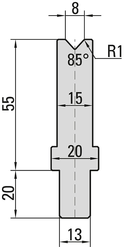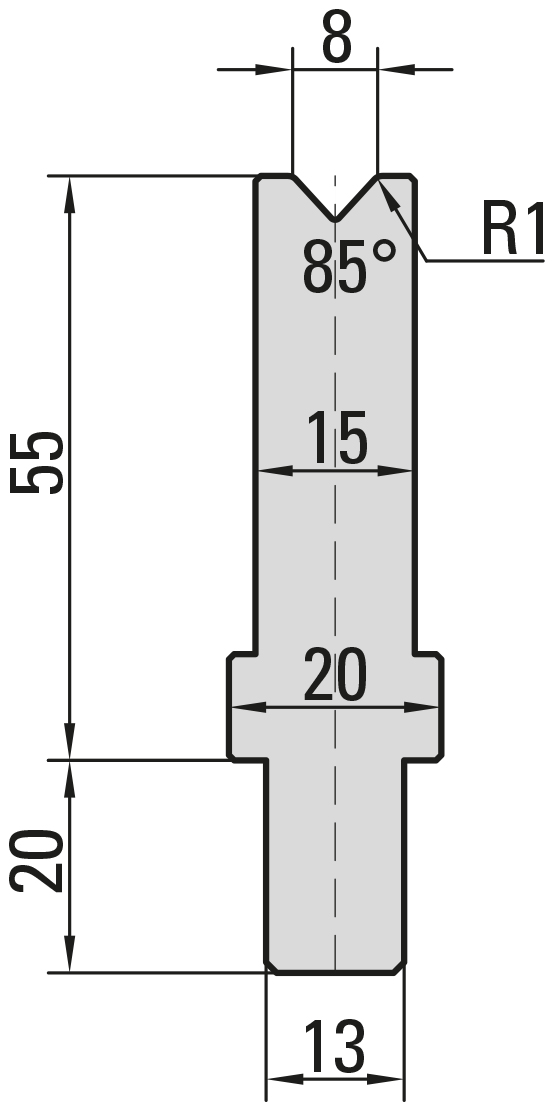 85° Matrize, V=8mm, R=1,0mm, H=55mm