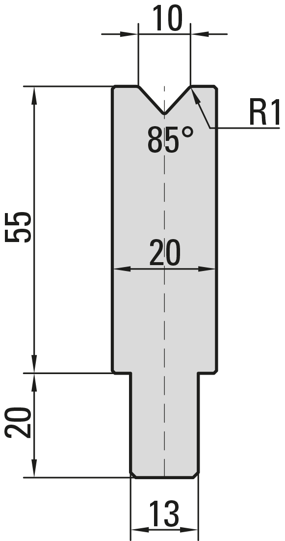 85° Matrize, V=10mm, R=1,0mm, H=55mm