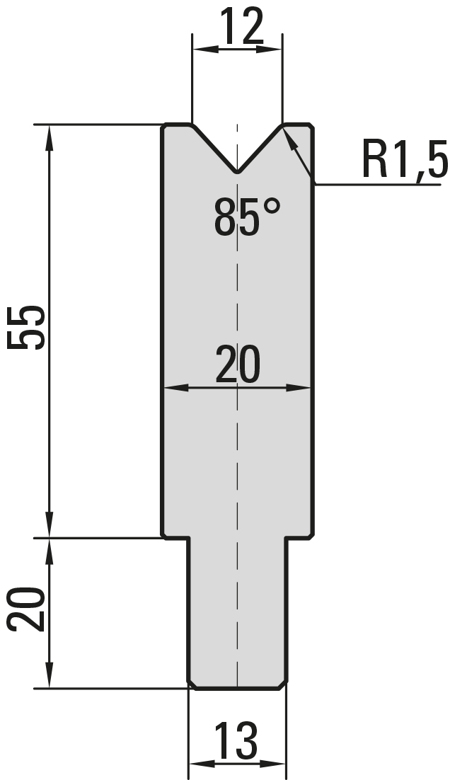85° Matrize, V=12mm, R=1,5mm, H=55mm