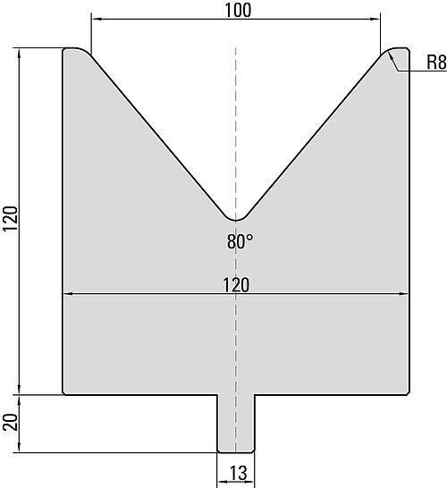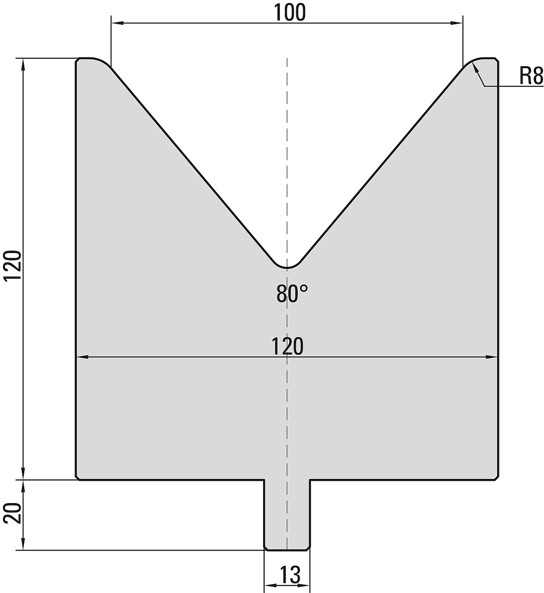 80° Matrize, V=100mm, R=8,0mm, H=120mm