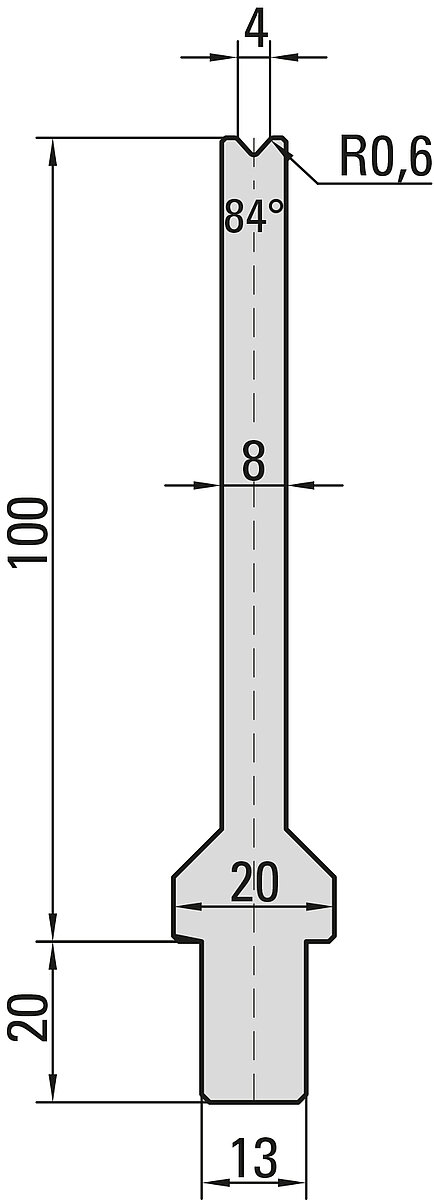 84° Matrize, V=4mm, R=0,6mm, H=100mm, B=8mm, L=100mm, UKB-System Trumpf