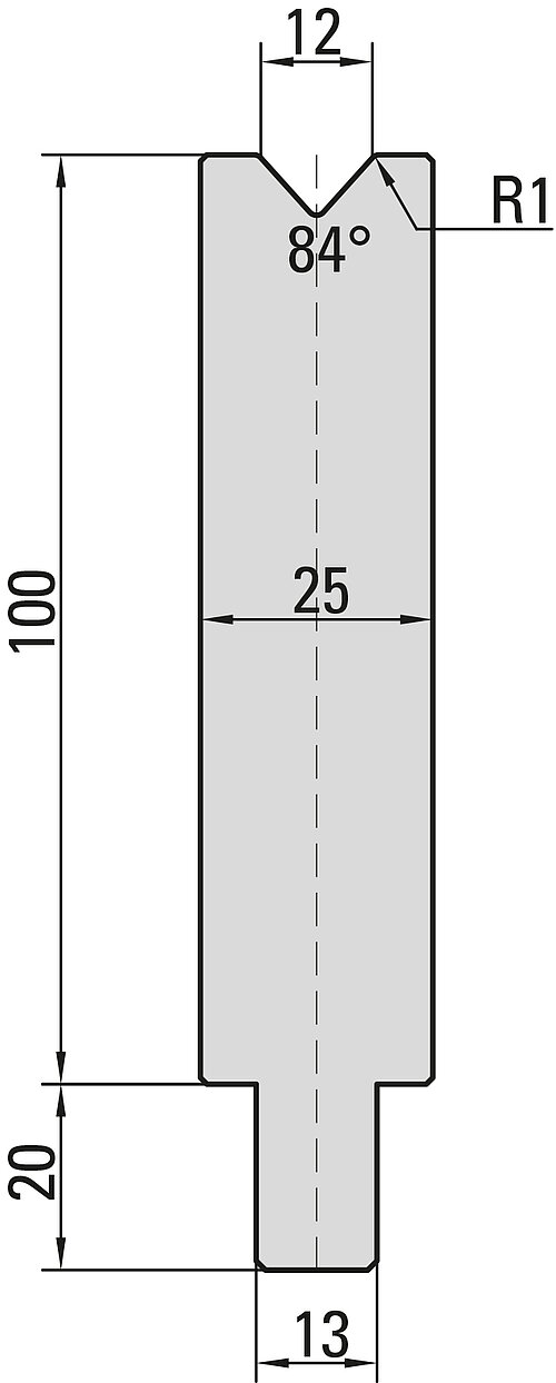 84° Matrize, V=12mm, R=1,0mm, H=100mm