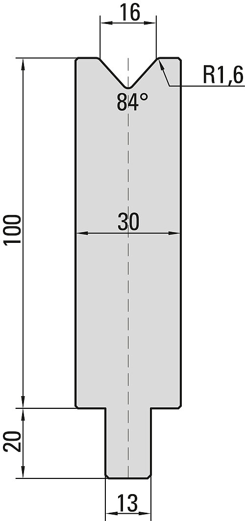84° Matrize, V=16mm, R=1,6mm, H=100mm
