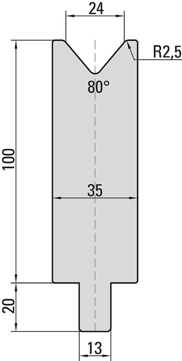 80° Matrize, V=24mm, R=2,5mm, H=100mm