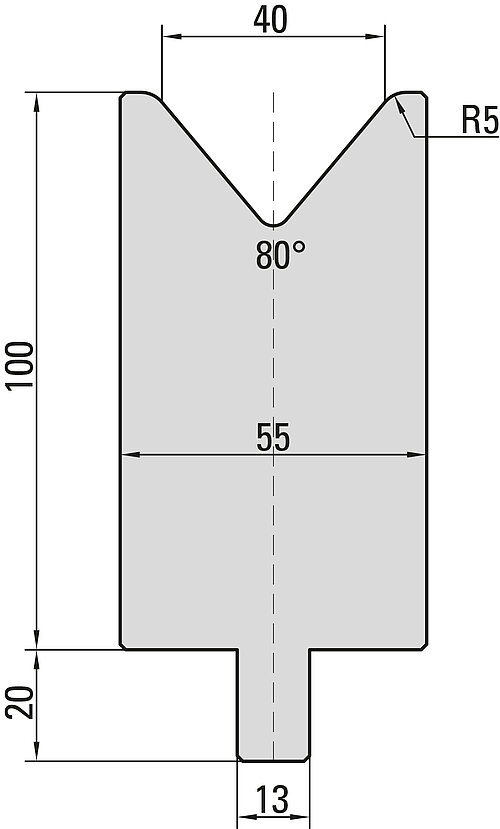 80° Matrize, V=40mm, R=5,0mm, H=100mm