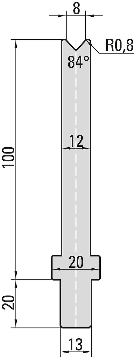 84° Matrize, V=8mm, R=0,8mm, H=100mm, B=12mm, L=100mm, UKB-System Trumpf