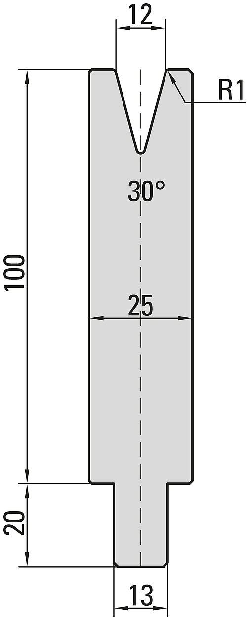 30° Matrize, V=12mm, R=1,0mm, H=100mm, B=25mm, L=100mm, UKB-System Trumpf