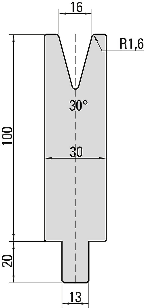 30° Matrize, V=16mm, R=1,6mm, H=100mm
