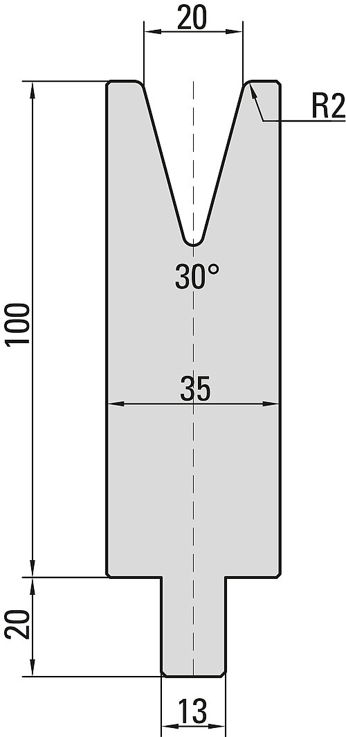 30° Matrize, V=20mm, R=2,0mm, H=100mm, B=35mm, L=100mm, UKB-System Trumpf