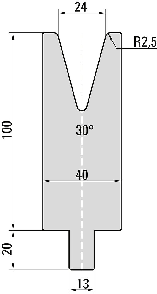 30° Matrize, V=24mm, R=2,5mm, H=100mm