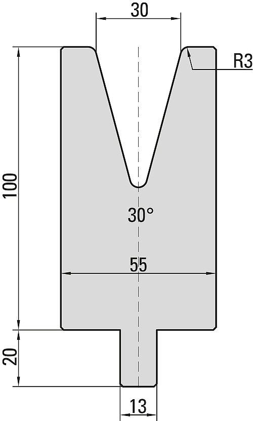 30° Matrize, V=30mm, R=3,0mm, H=100mm, B=55mm, L=100mm, UKB-System Trumpf