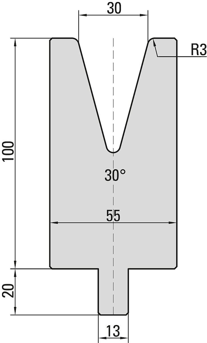 30° Matrize, V=30mm, R=3,0mm, H=100mm