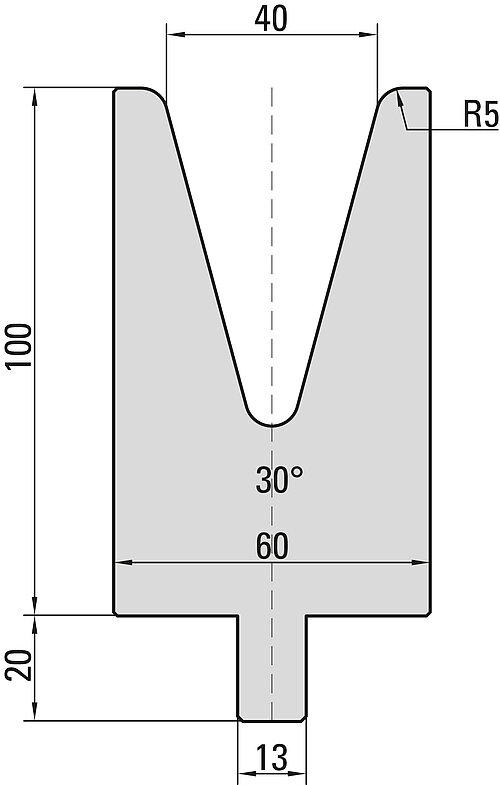 30° Matrize, V=40mm, R=5,0mm, H=100mm